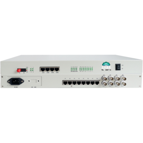 TEL 4E4F+16是一款4E1+4路百兆网络+16路业务接口的PCM综合复用设备。该设备应用时分复用技术,将以太网信号和E1信号混合编码后在一对光纤上传输。提供百兆以太网业务、E1业务、话路业务、V35业务、数据业务、二/四线等混合传输业务,传输通道分为光传输通道、E1传输通道。
