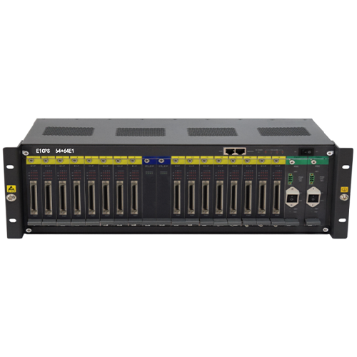 ★机箱结构:4U高,19英寸宽插卡式机箱,共提供21个槽位包括2个电源盘槽位、2个主控网管盘槽位、16个E1保护盘槽位、1个风扇槽位;